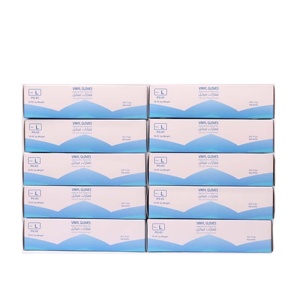 كمية كبيرة تخدمك وقت طويل: كل عبوة فيها 70 قلفز مقاس لارج، ومع وجود 10 عبوات في الكرتون، تحصل على 700 قلفز كامل يضمن لك مخزون يكفيك لفترة طويلة بدون انقطاع.